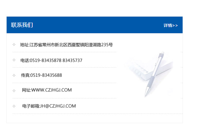 地址:常州市新北區(qū)友邦商務(wù)大廈1幢16、17層  電話:0519-85101652  傳真:0519-85112595  郵編:213022  網(wǎng)址:www.cz-jiayue_cn.hansenzl.com  郵箱:xiajifengaa@163.com